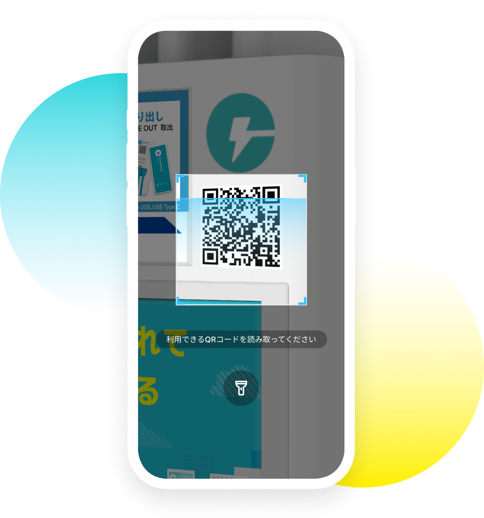 スマホのカメラアプリやCHARGESPOTアプリのQRコードリーダー機能を起動し、バッテリースタンドのQRをスキャンしてください。
