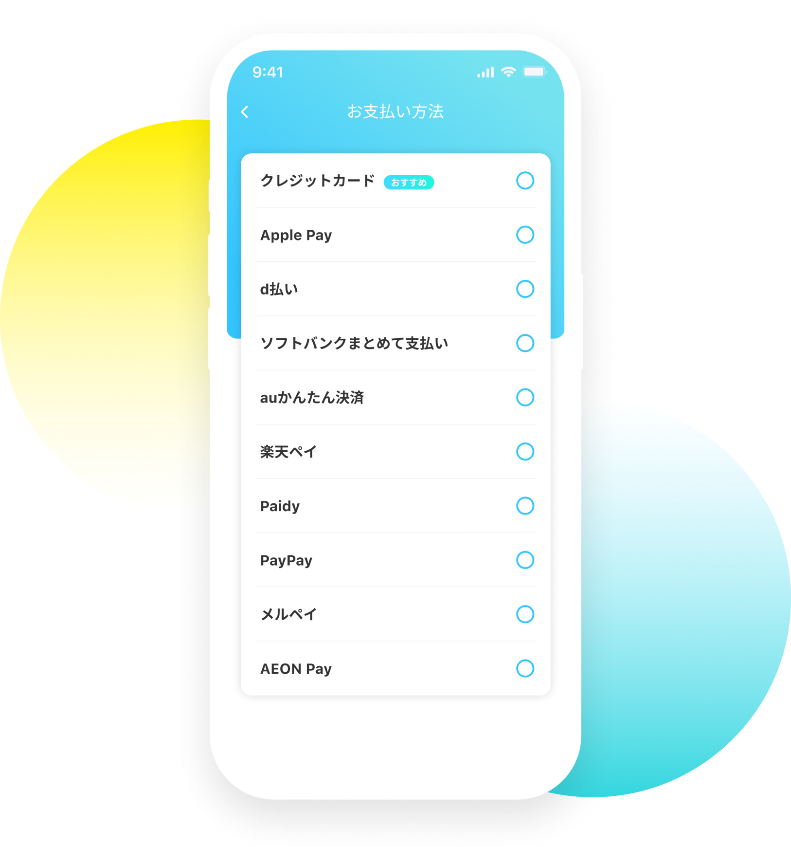 クレジットカード払い、携帯電話料金まとめて払い、各種キャッシュレス決済など様々なお支払い方法をご利用いただけます。